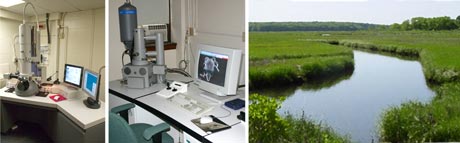 The botany department offers exceptional facilities to support teaching and research in plant science. A 750-acre living laboratory, the Connecticut College Arboretum comprises over 500 species of woody plants, an extensive native plant collection, a wildflower garden, and over 200 acres of undisturbed natural areas. The arboretum is regularly used by the botany department in coursework and research, including an ongoing 65-year study of forest development. A 3,000-square-foot greenhouse houses a tropical room, cactus and carnivorous plant collections, and sophisticated climate control to support cutting-edge research. An herbarium with over 15,000 curated plant specimens is used to investigate the distribution of plant species as well as to teach plant identification skills. Students work one-on-one with faculty to conduct research on-site and in the field during the academic year and summer. They use state-of-the-art instrumentation, including light, fluorescence and electron microscopes, a flow-through dynamic imager for particle analysis, and tissue culture facilities for sterile plant propagation.