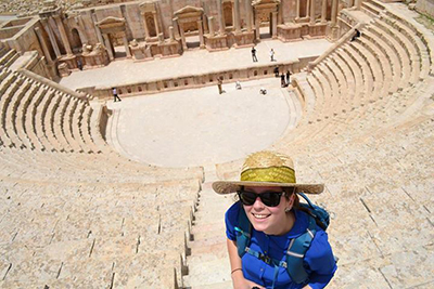 Connecticut College student Kaitlyn Garbe '15 in the Roman Theater in Jerash, Jordan
