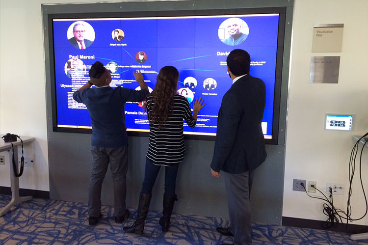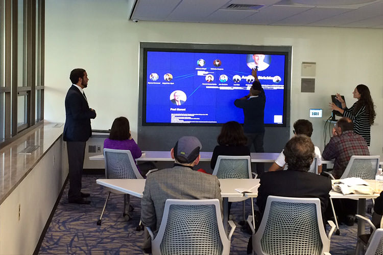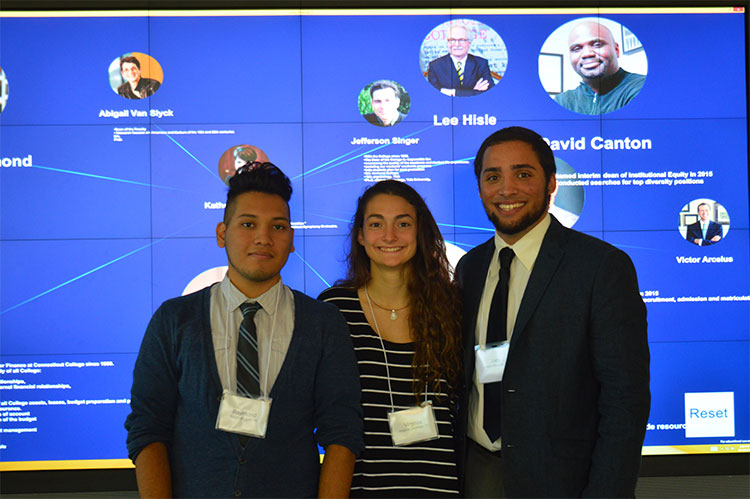 Ammerman Center scholars Ray Coti '16, Virginia Gresham '17 and Joey Mercado '16 demonstrated "Visual Institutional Hierarchy," an interactive representation of the college's administrative hierarchy and reporting structure.Ammerman Center scholars Ray Coti '16, Virginia Gresham '17 and Joey Mercado '16 demonstrated "Visual Institutional Hierarchy," an interactive representation of the college's administrative hierarchy and reporting structure.