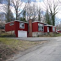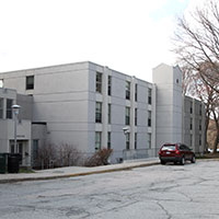 The River Ridge apartments are part of "The Village," a collection of apartments, houses and residence houses located across Mohegan Avenue/Route 32 from main campus, between the Connecticut College Athletic Center and the U.S. Coast Guard Academy. The seven River Ridge Road apartments house between two and five students each and are independent living options that are available to sophomores, juniors and seniors. Each apartment features a full kitchen, living room and deck with bedrooms downstairs.
