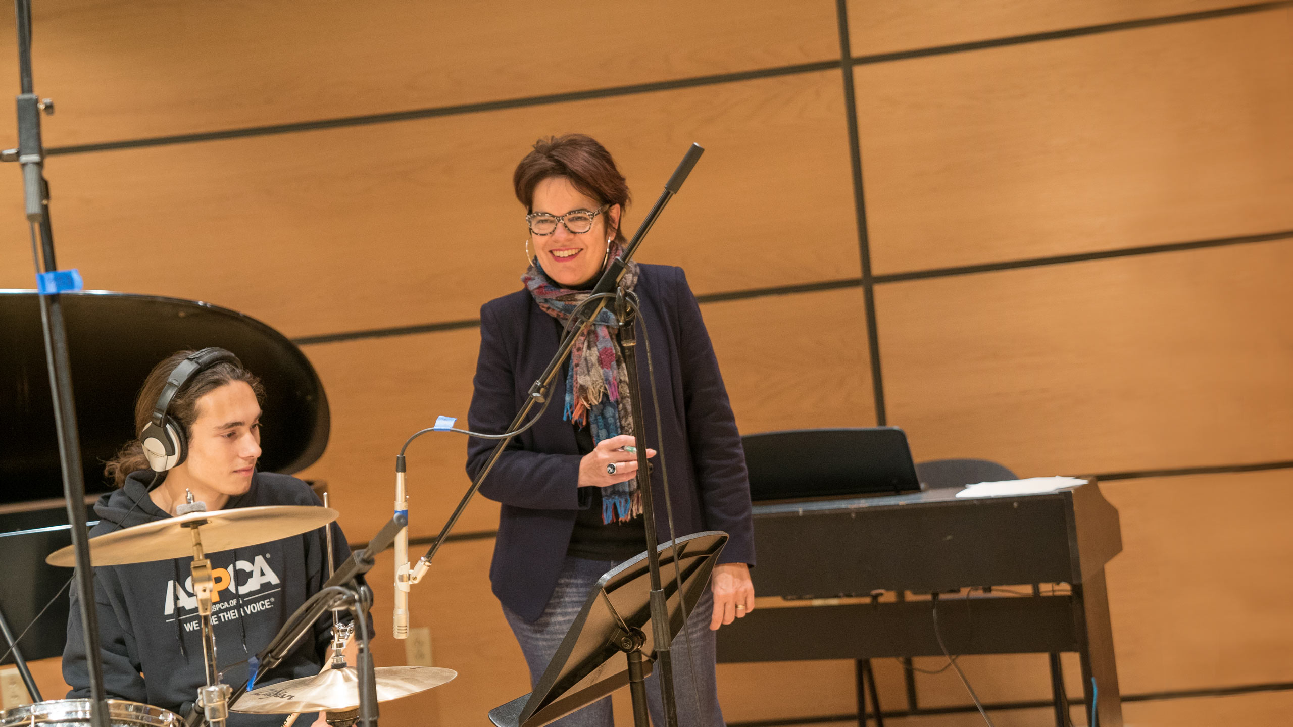 Conn President Katherine Bergeron teaches Music 201, a songwriting class exploring the expressive dimension of song.