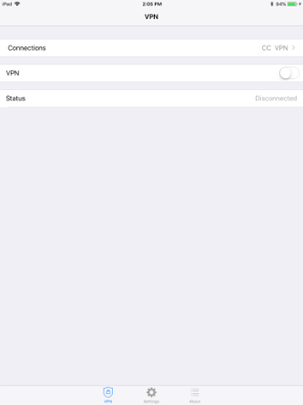 Then use the following settings: Name: CC VPN (or whatever name you wish to use),