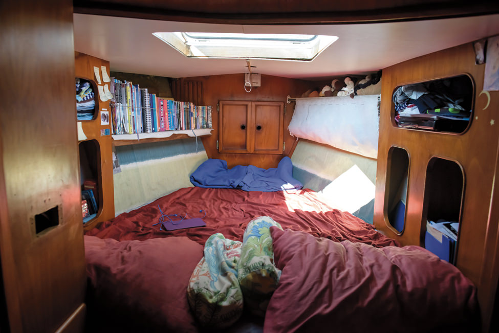 Above and below deck, Totem is simply and sparsely furnished, with the exception of a collection of books. Fourteen-year-old Marien and 12-year-old Siobhan share a small cabin; 17-year-old Niall’s cabin doesn’t even have a door.