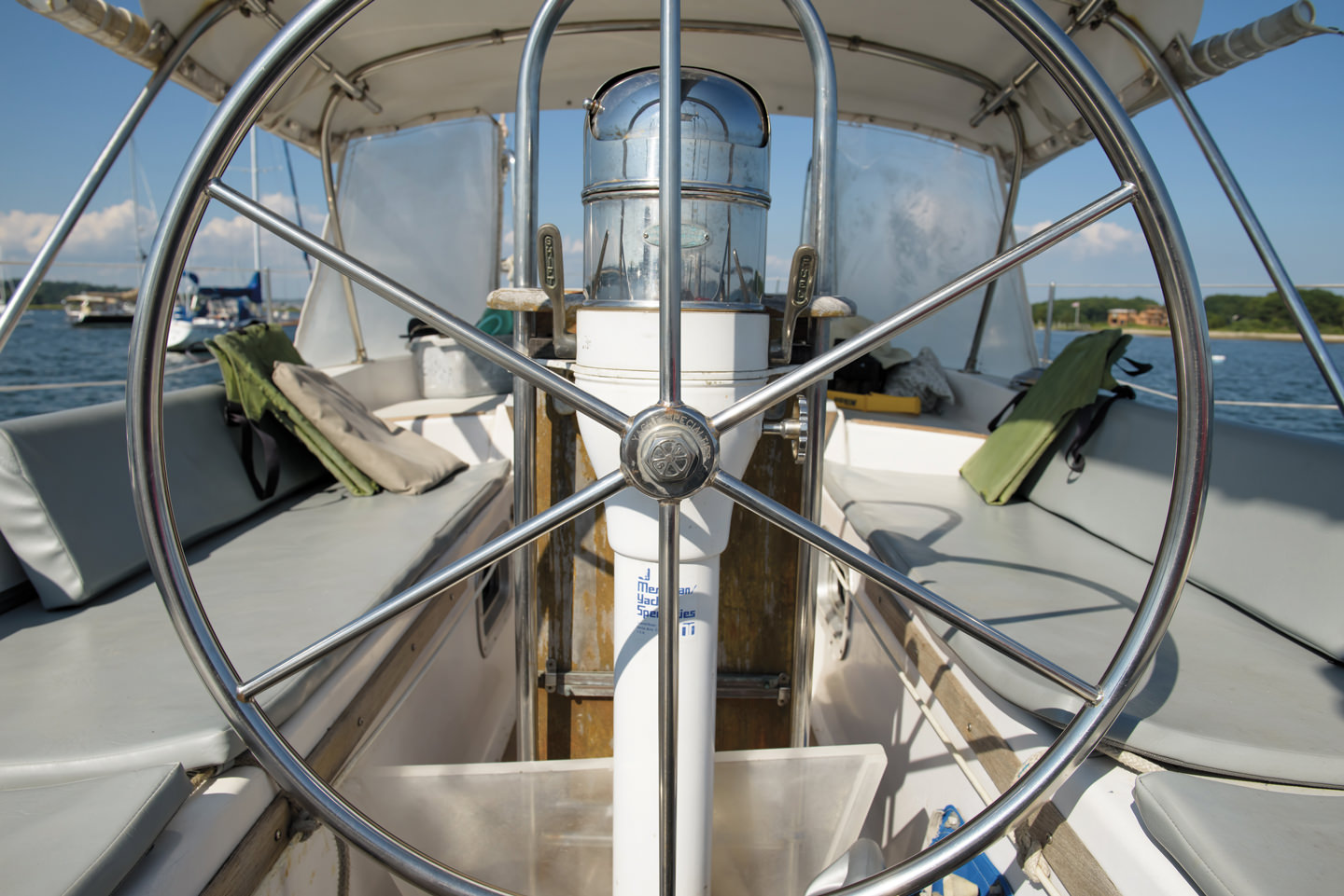 The Giffords’ boat is affectionately known as a “classic plastic” cruiser. The rub rail is worn and the paint is chipping, but it’s home to them.
