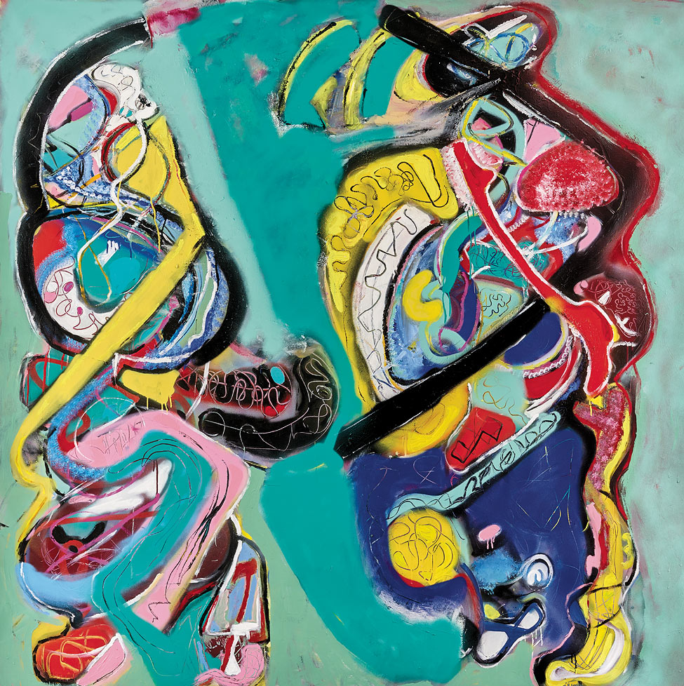 That early exposure to the sensibilities of the art world, combined with a richly seasoned path that also includes a role in director David Lynch’s Inland Empire, is reflected in Yulish’s deeply personal, large-scale abstract paintings.