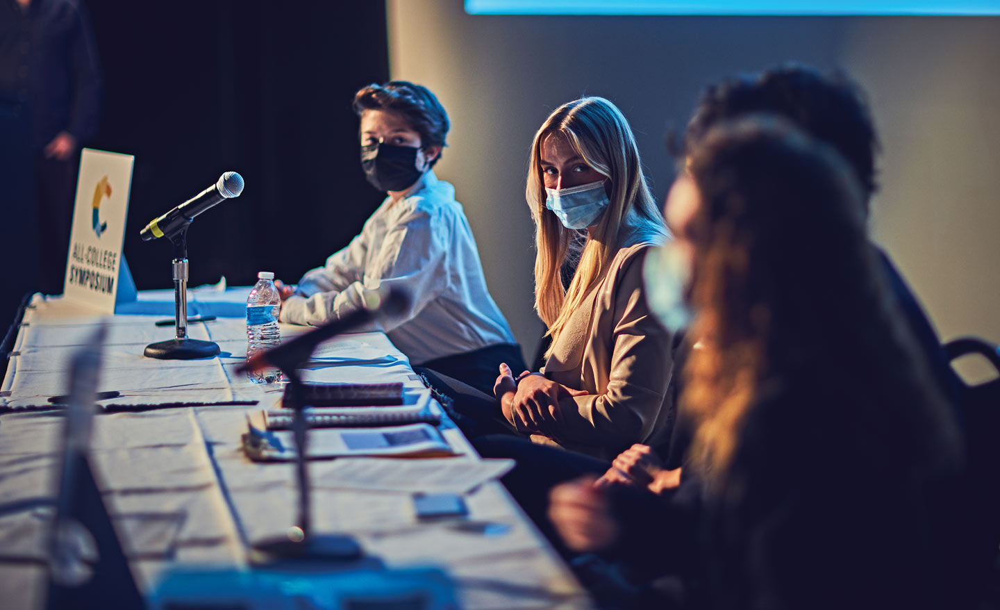 Max Toscano ’22, an environmental studies major and scholar in the Creativity Pathway, told the faculty, staff and students in attendance during his talk that he drew inspiration from the Broadway musical “Dear Evan Hansen” for his animating question, “How can I leave some form of mark on the world?”