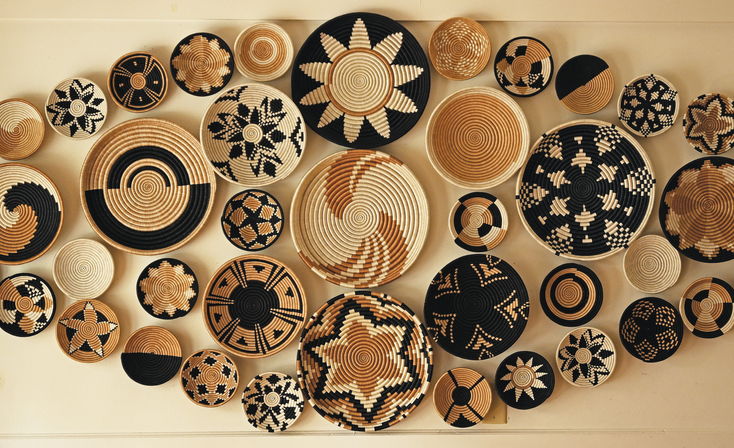 Last fall, Taylor Austin ’24 attended a New York City fundraiser for the Dian Fossey Gorilla Fund and secured a gift for Conn: a large wall display of baskets woven by women artisans in Rwanda.