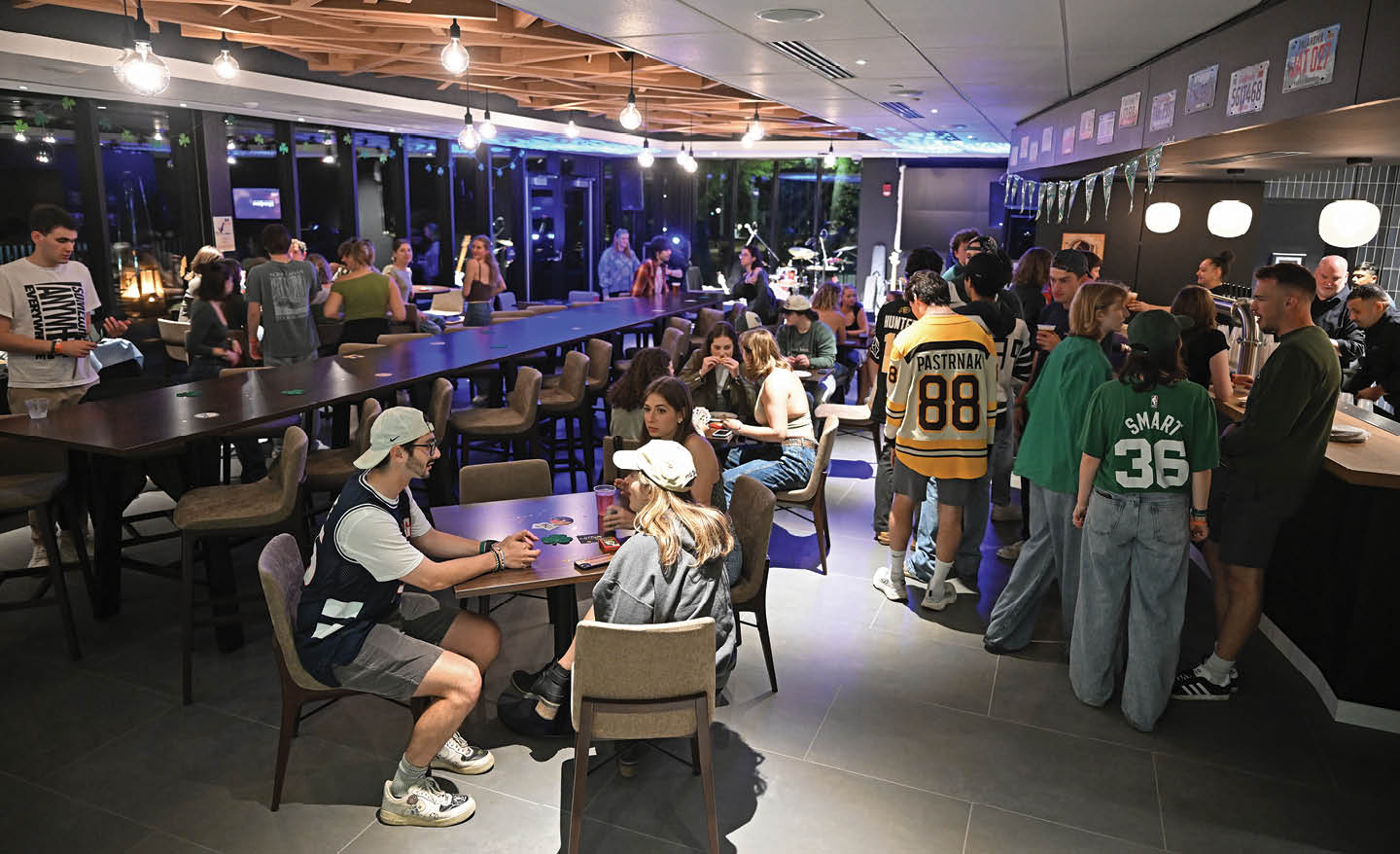 Previously cavernous and cool, Cro’s interior is now warm and cozy, with natural color schemes, varied seating options and comfortable alcoves. The ground floor features an entirely new Oasis eatery—complete with an outdoor patio—and a renovated Susan E. Lynch 1962 Room with enhanced technology and a flexible seating design to accommodate events of all sizes. Upstairs, the former Cro’s Nest has been replaced with a bright and airy Humphrey’s pub featuring both indoor and outdoor space for gatherings and performances.