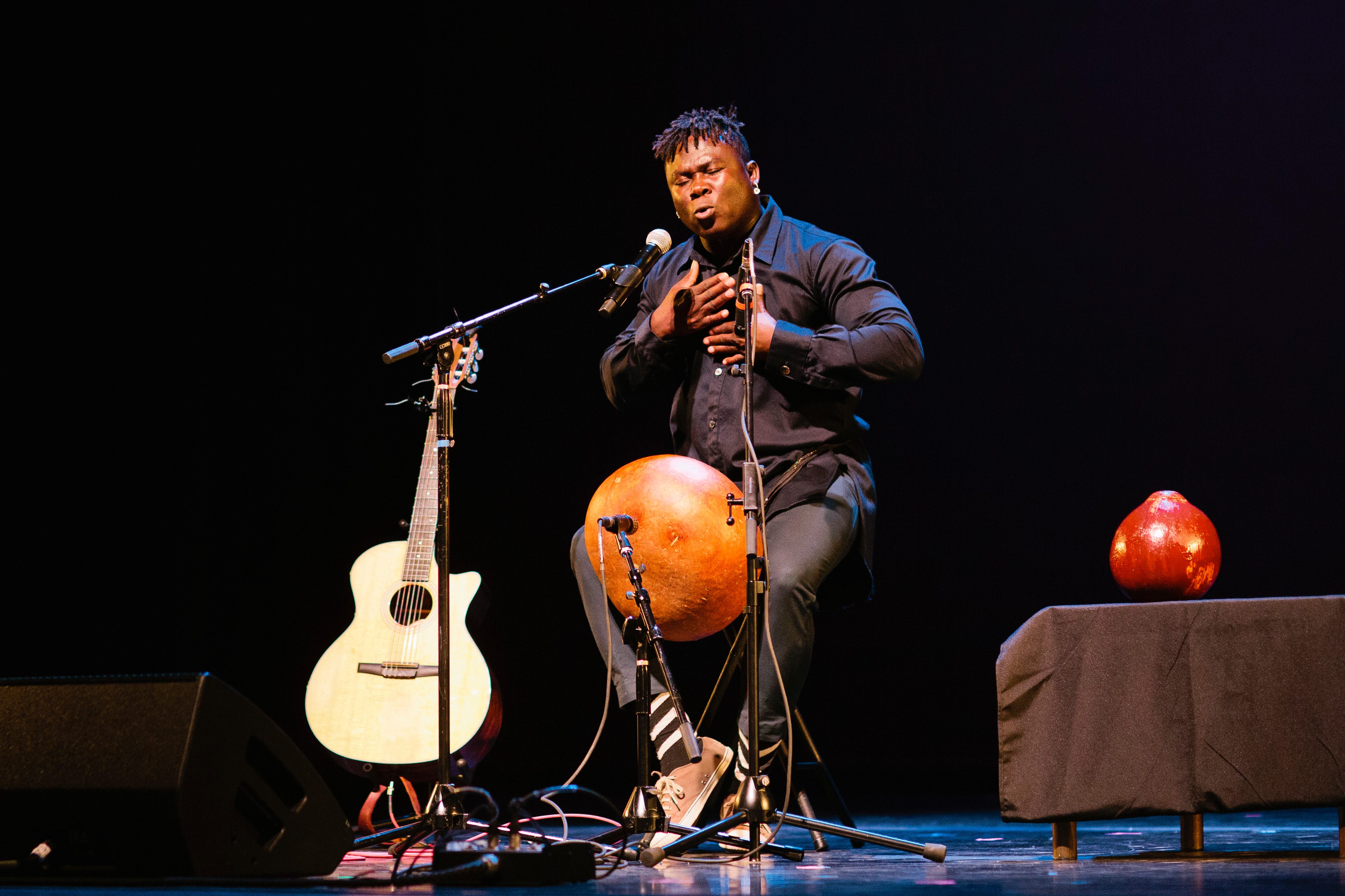Born into a family of musicians and storytellers in the village of Kokrobite on the west coast of Ghana, Afroso is a singer, guitarist, percussionist and dancer deeply connected to the musical traditions of the African Diaspora. Through his distinctive style that combines various percussion instruments, vocals, guitar and dance, Afroso explores the perseverance of ancestral traditions and creates a new, contemporary African oral tradition.