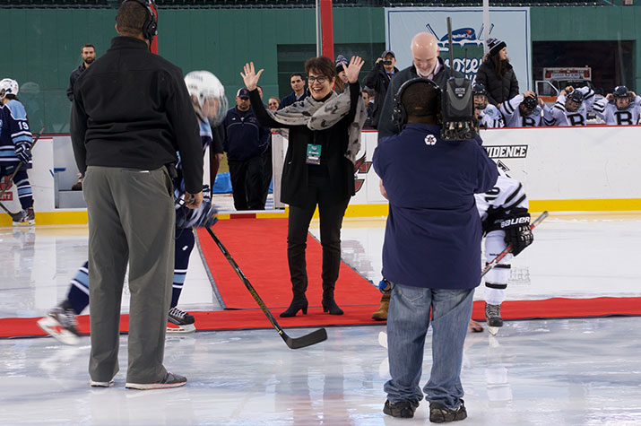 "Our athletes showed the true Conn spirit today," said President Katherine Bergeron, who participated in the ceremonial puck drop at the start of the game. “It was a thrill to see so many members of our community cheering them on—not to mention the great talent and sportsmanship our Camel women showed on the ice. An inspiring way to start 2017 and a moment we won’t soon forget.”