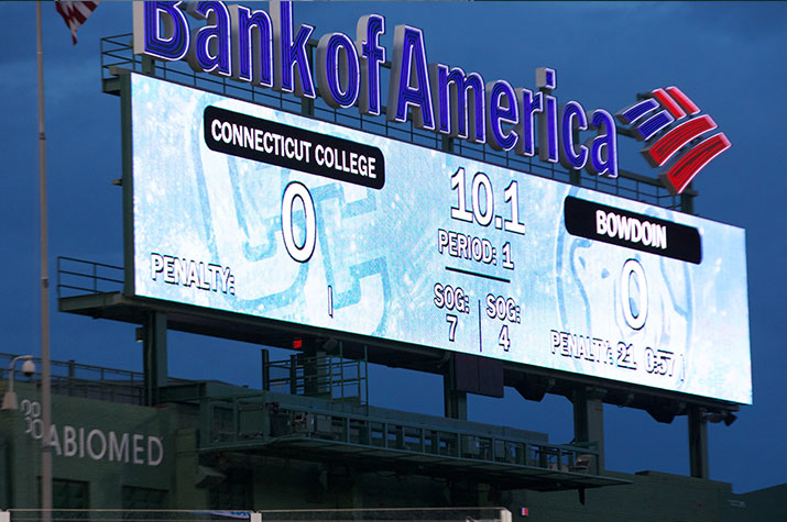 The Connecticut College women’s hockey team faced off against Bowdoin Jan. 12 at Boston’s Fenway Park as part of Frozen Fenway, an annual series of hockey and ice-skating events at the historic home of the Boston Red Sox.