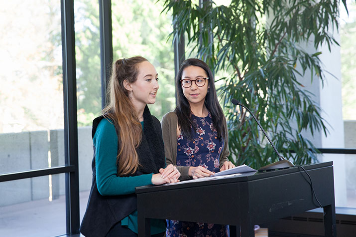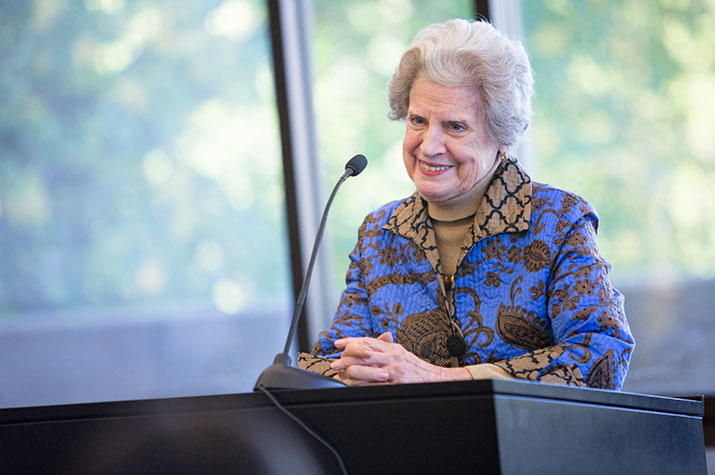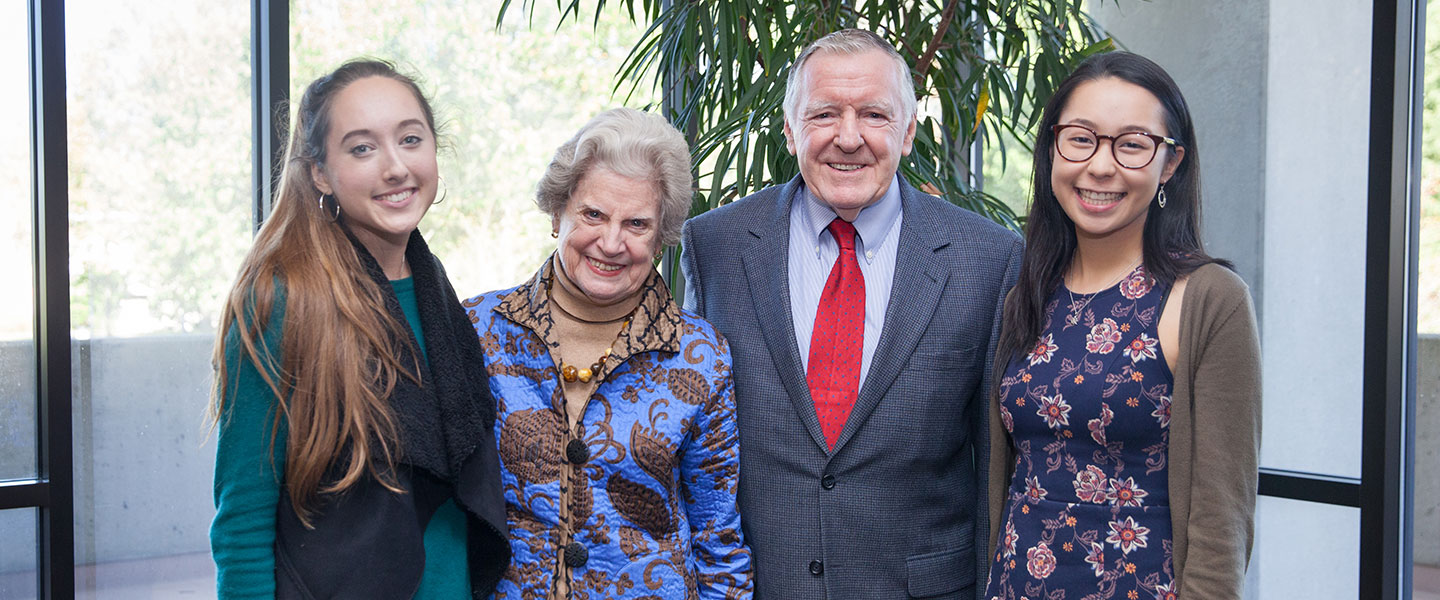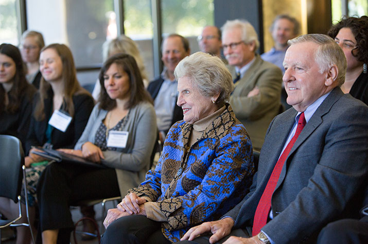 Students, faculty and staff gathered in the Shain Library’s Charles Chu Asian Art Reading Room to formally thank Carolyn Holleran '60 and her husband Jerry Holleran GP '07 for their $2.5 million gift that will support the next generation of Holleran Center scholars, and will continue the rich legacy of the Holleran Center, which the couple first endowed 21 years ago.