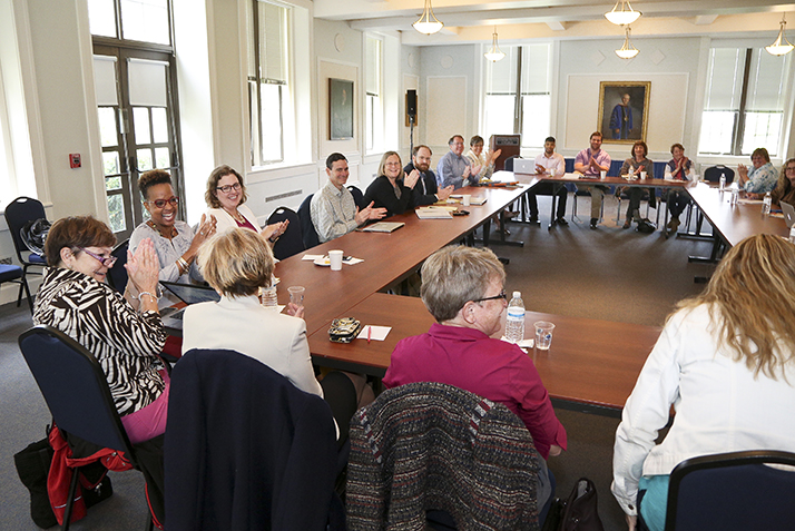 President Katherine Bergeron acknowledged members of the Connecticut College staff for their valuable contributions at the annual Presidential Staff Recognition Breakfast and Awards Ceremony May 12.