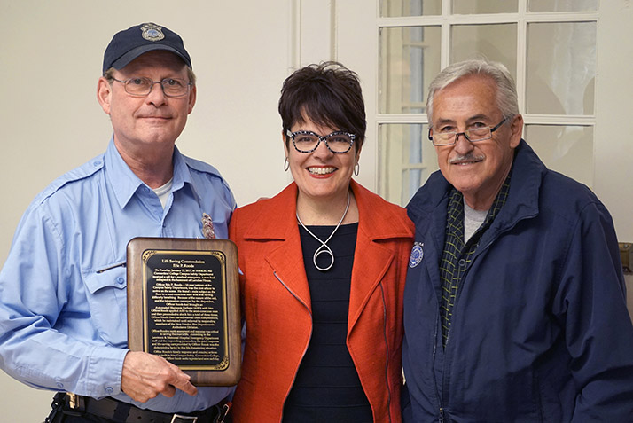 Last January, Campus Safety Officer Eric Roode saved the life of a colleague who had collapsed. Roode, who joined the Conn community in 2006, administered manual chest compressions and used a defibrillator to keep the man alive until paramedics could arrive on campus. The Emergency Room doctors at Lawrence & Memorial Hospital said that Roode’s swift response made the key difference between life and death. After reviewing multiple accounts of Roode’s heroism, the Awards Selection Committee decided he deserved to be honored with a newly created Recognition of Valor.