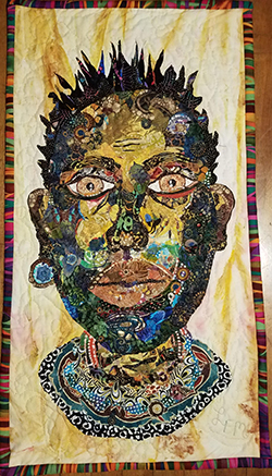 Linda Martin ’75 creates colorful quilted portraits out of bits of fabric.