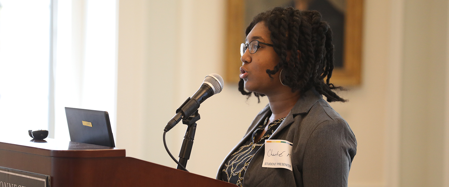 Qasim, an international relations major and scholar in the Toor Cummings Center for International Studies and the Liberal Arts (CISLA), was one of 165 seniors who presented at the inaugural All-College Symposium, a day-long event highlighting students’ integrative learning in Connections, the College’s reinvention of the liberal arts. Through 10-minute talks, poster sessions, performances, screenings and exhibitions, students who participate in the College’s 13 Integrative Pathways and five Centers for Interdisciplinary Scholarship showcased how their coursework and experiences have informed their studies and learning over four years.