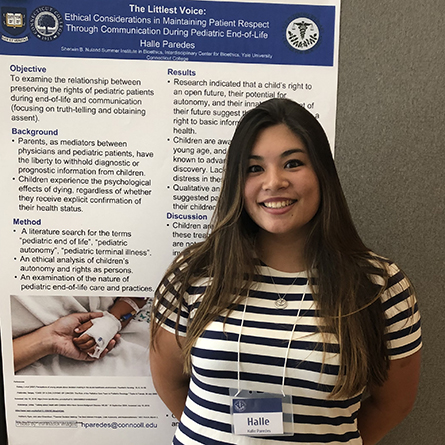 Parades, who is studying abroad in London this semester, said the Sherwin B. Nuland Summer Institute in Bioethics gave her the opportunity to connect her interests in philosophy and public health and inspired her to consider pursuing a career in bioethics. She credits her Connecticut College professors and her career adviser with providing support throughout the entire process, from writing recommendations to preparing her for the program to helping to edit her abstract.
