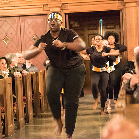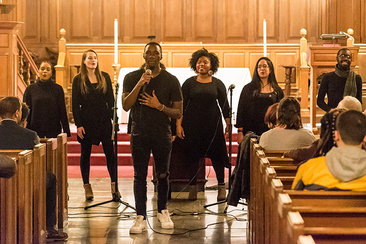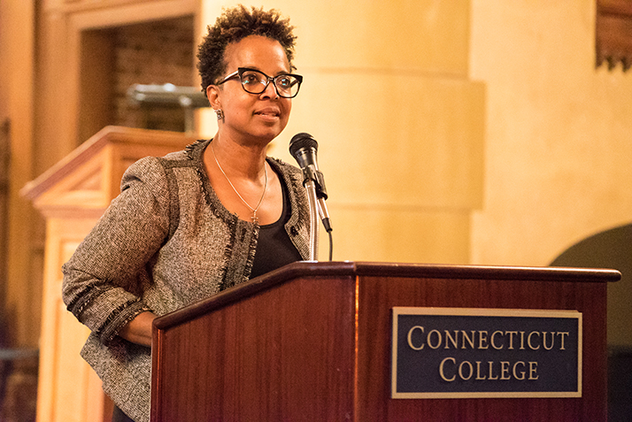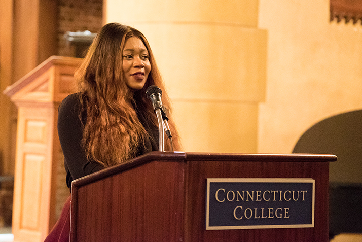 After performances by the Connecticut College Gospel Choir and a special presentation by Andre Thomas ’20 that contrasted the different approaches to civil rights activism taken by King and fellow civil rights icon Malcom X, the keynote address was delivered by Director of Religious and Spiritual Programs Angela Nzegwu, who spoke about the lasting impact of King’s work.