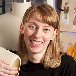 Recent publications include “Collision of Art and Life,” an article chronicling the experimental costumed Tribes exhibit at the 2015 Prague Quadrennial, and “Mounting an Exhibit of Historical Costume,” which documents the garment selection, conservation and mounting process undertaken to create the Women of New England: Dress from the Industrial Age, 1850-1900 exhibit at the William Benton Museum of Art, for which she also served as a conservator. Both pieces were published in the TD&T (Theater Design & Technology) journal.