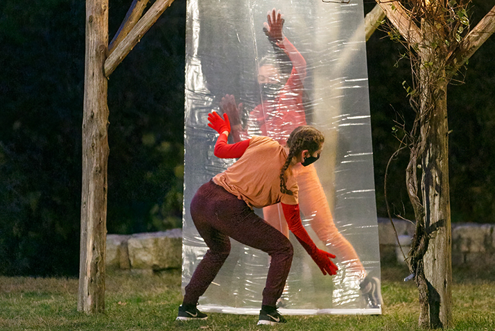 Elisabeth Wales ’22 had never performed a dance piece outside, much less with the restraints of social distancing. But the shared challenges of dancing on uneven ground, wearing masks and creating a work that reflected the times we’re living in felt surprisingly liberating to Wales and her fellow dancers.