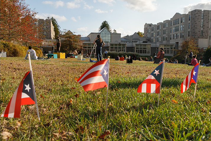 The College’s first play to be performed since the pandemic hit last spring was an original work titled Seven Twenty-Five, written by Ana Reyes-Rosado ’20, and directed by guest artist Jude Sandy and Andre Thomas ’20, who served as associate director. The story centers on the suppressed history of the Puerto Rican revolution in the 1970s and the question of who has the right to write or rewrite history.