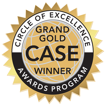 The international CASE awards program honors outstanding work in advancement services, alumni relations, communications, fundraising and marketing at colleges, universities, independent schools and affiliated nonprofits. A Grand Gold Award is the highest level of recognition in the program, and the award is reserved for entries that are extremely exceptional or “game-changing.” Grand Gold Awards are rare, and only one may be given per category.