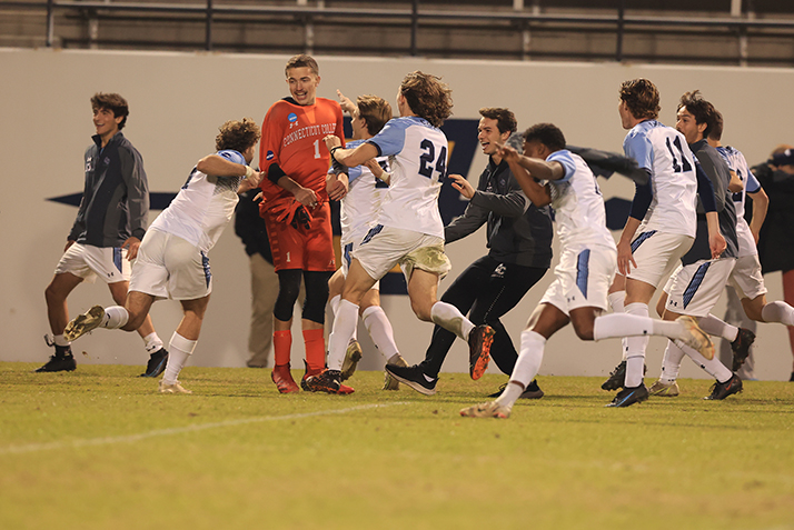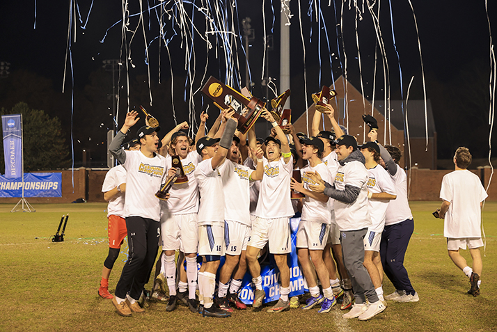 Men’s soccer won its first-ever national championship Dec. 4, defeating Amherst 1-1 (4-1) on penalties at UNCG Soccer Stadium in Greensboro, North Carolina.