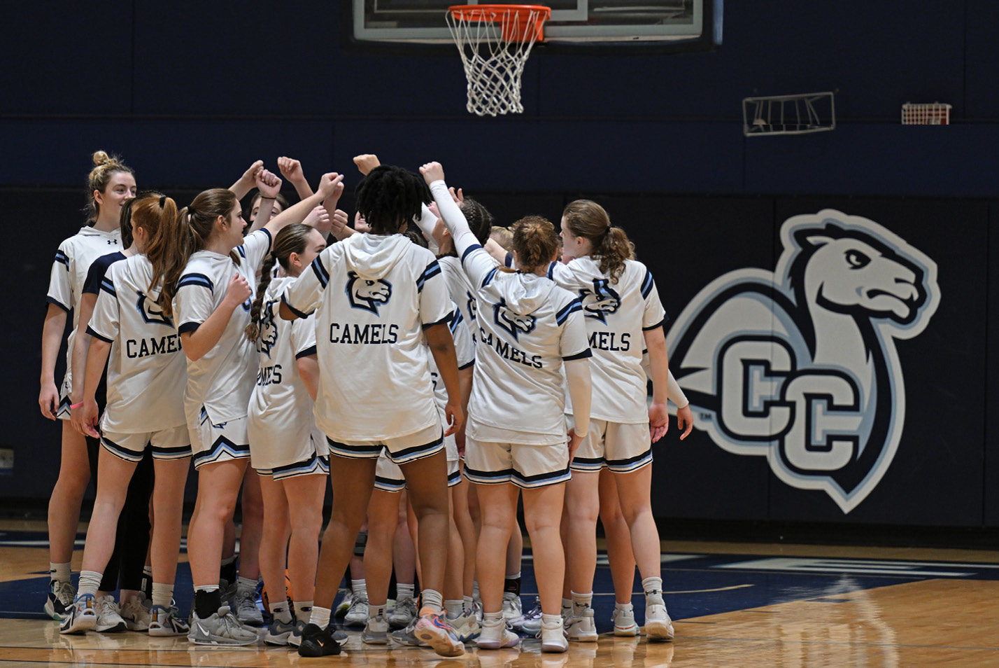 The women's basketball team warms up before facing Mount Holyoke at Luce Field House on Dec. 9. The Camels won 75-33.