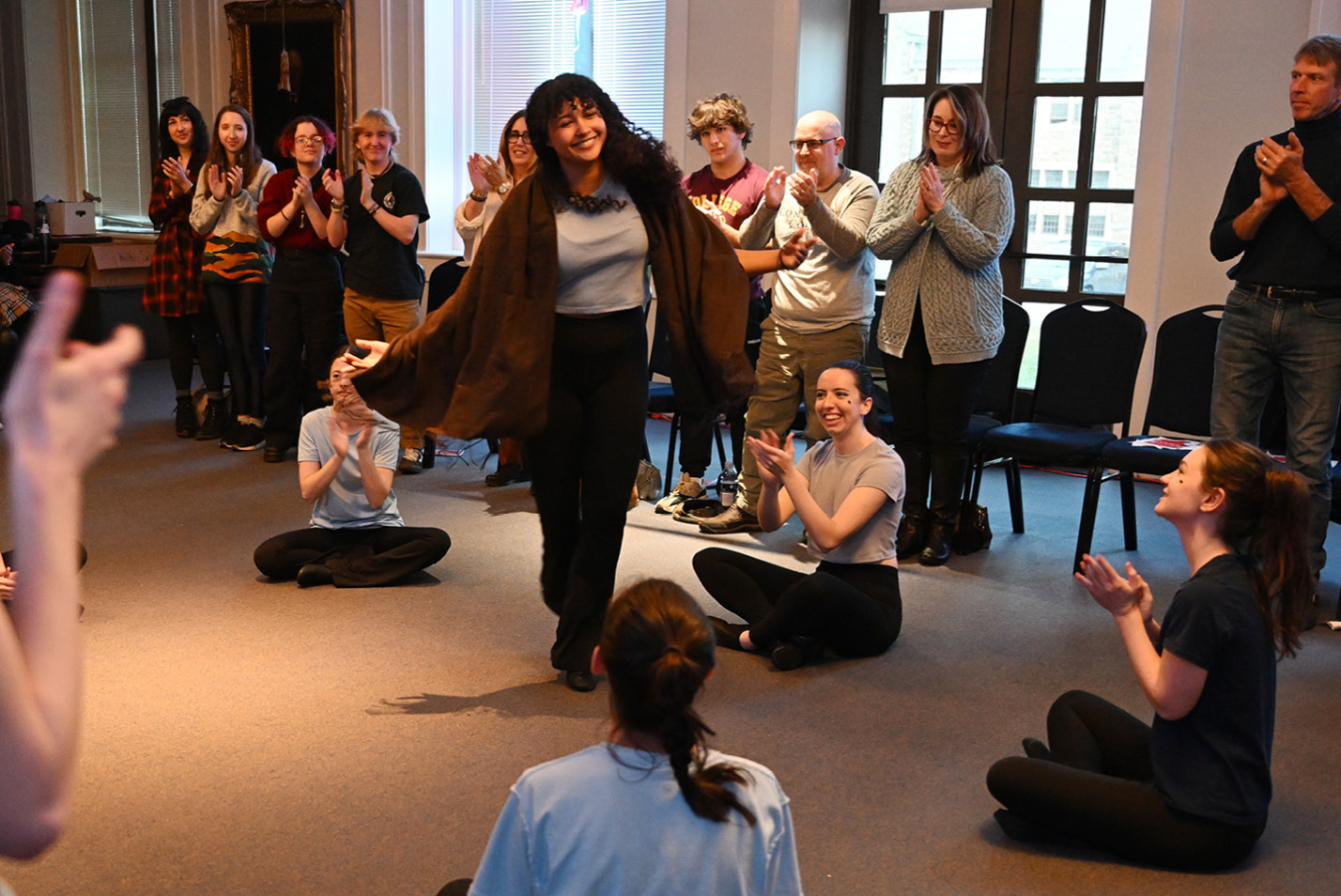Amanda Brady ’25 as Leading Player in the Wig and Candle production of “Pippin.” The play, directed by Guiseppe Piccirilli ’25, was held in early December in Conn’s Ernst Common Room. Established in 1915 to support student-initiated work and provide theatrical opportunities on campus, Wig and Candle is Conn’s oldest theater group. Each production is produced, directed, acted and designed by Conn students.