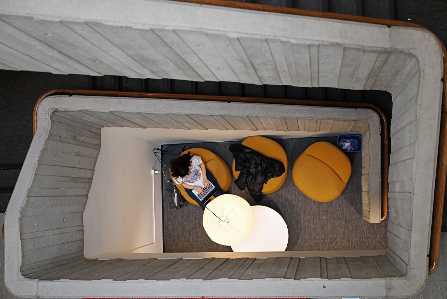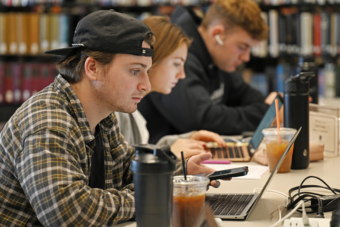 Declan Kuhn ’25 studies for finals on the second floor of Shain Library.Farah Najjari ’25 works on a final paper for a sociology class.