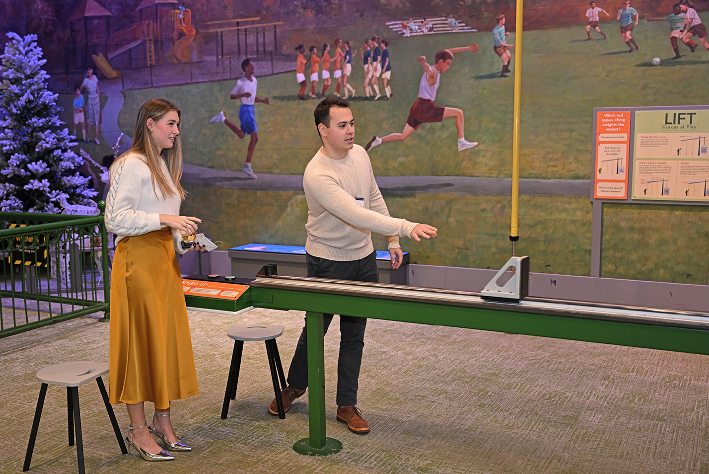 Alumni mixed science with celebration at the Dec. 6 alumni holiday party at the Museum of Science in Boston.