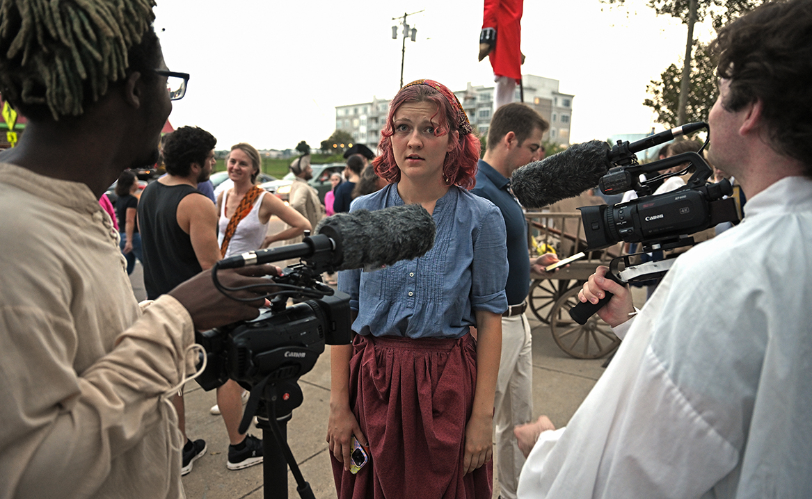 In the doc, they mix on-site interviews with footage of the 2023 Flock Theatre Burning of Benedict Arnold Festival. The result is a blast of experiential storytelling that allows the viewer to feel like part of the festival while also maintaining enough distance to provide context and insight.