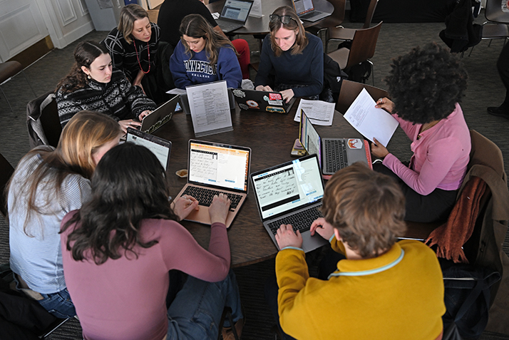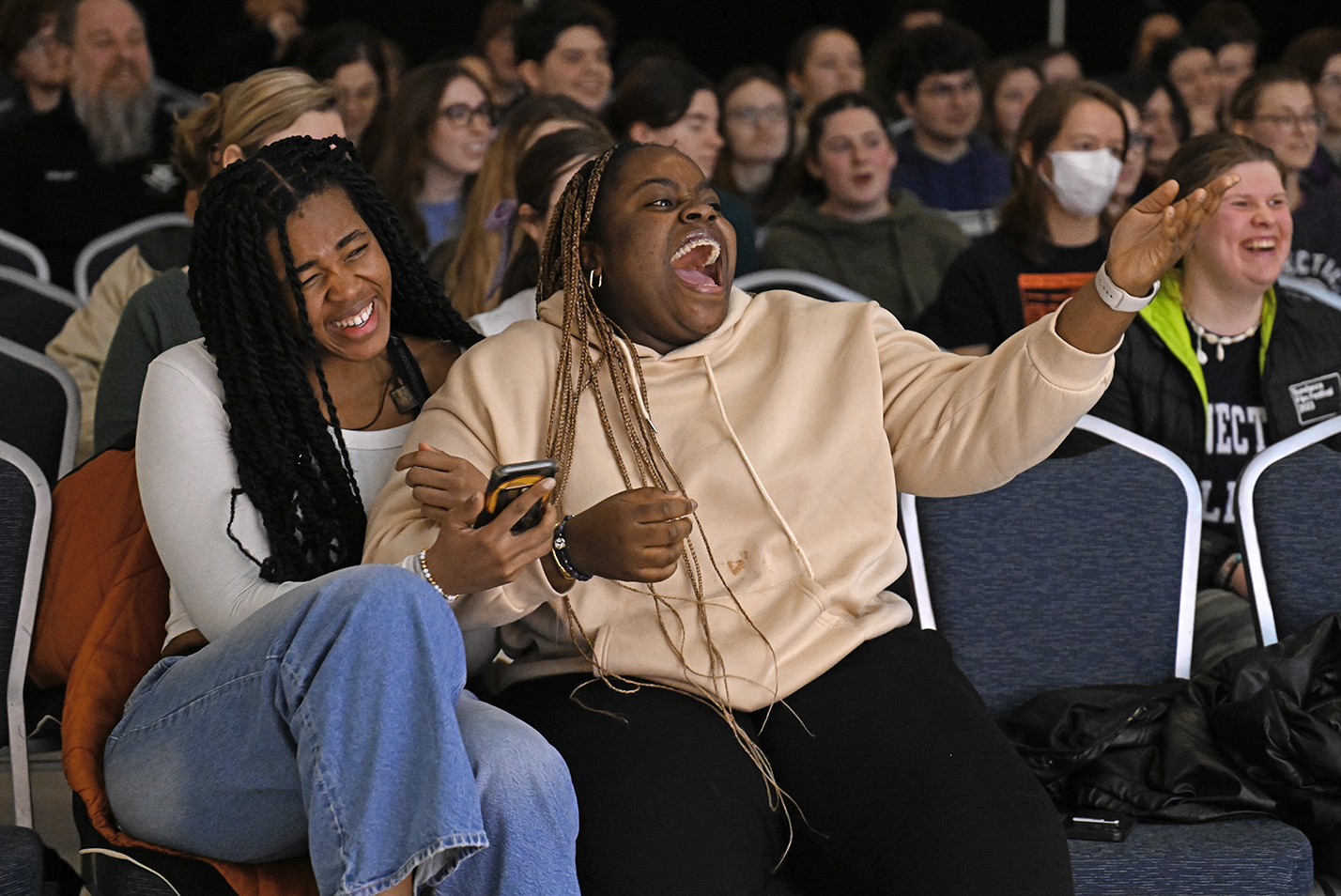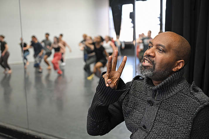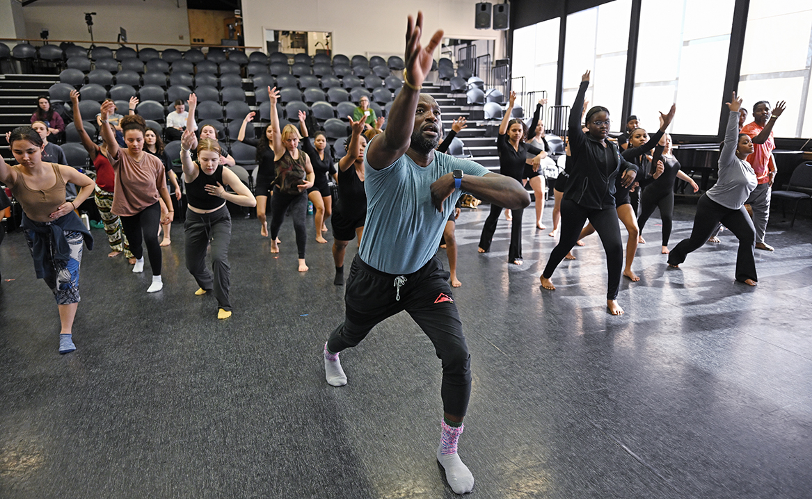 West African dancer Kwame Shaka Opare leads a workshop in Conn’s Martha Myers Dance Studio for attendees at “Igniting Emancipatory Possibilities through African Diaspora Dance.” The summit, held Feb. 8-10, brought dance enthusiasts, artists, scholars, students and practitioners to campus to celebrate and explore the richness and diversity of African diaspora dance. Read more.