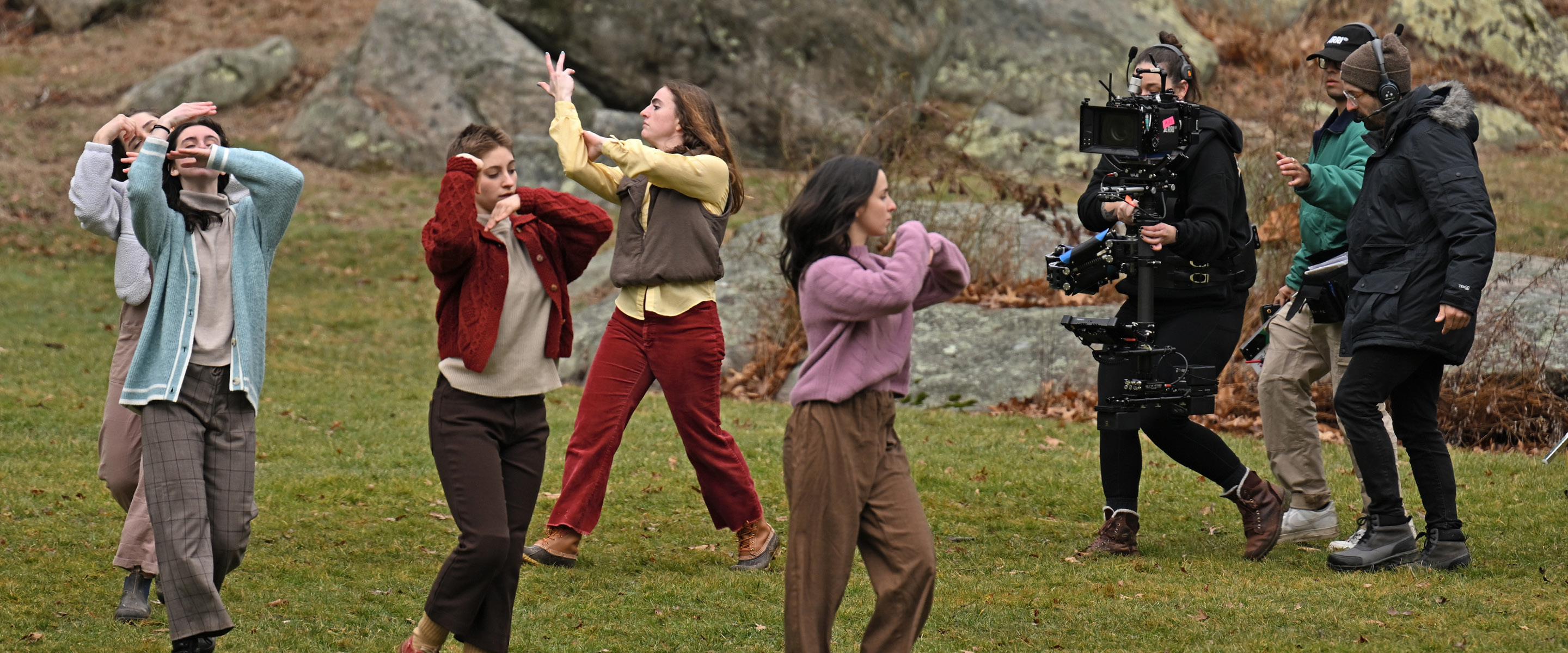 Alumni filmmakers Khadija Tariyan ’11 and Liz Charky ’13 work on choreography for a film commissioned by the Dance Department. The film, tentatively titled “Look into the Corner,” is scheduled to be released this spring.