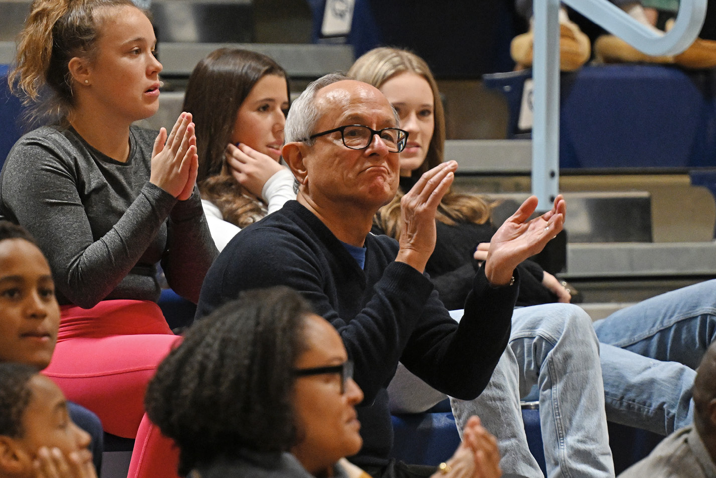 Teammates cheer on Emma Lent ’27 in the 200 yard breaststroke.