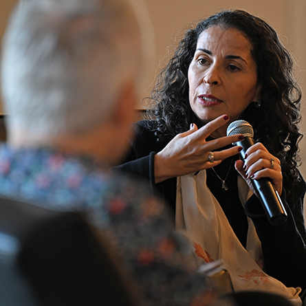 Moroccan American multigenre author Laila Lalami discussed these topics and more with English Professors Marie Ostby and Jeff Strabone in an engaging conversation on fiction, citizenship and migration on Feb. 26. Lalami, who is a distinguished professor of creative writing at the University of California at Riverside, traveled to New London from the Radcliffe Institute for Advanced Study at Harvard University in Cambridge, Massachusetts, where she is completing a year-long fellowship.