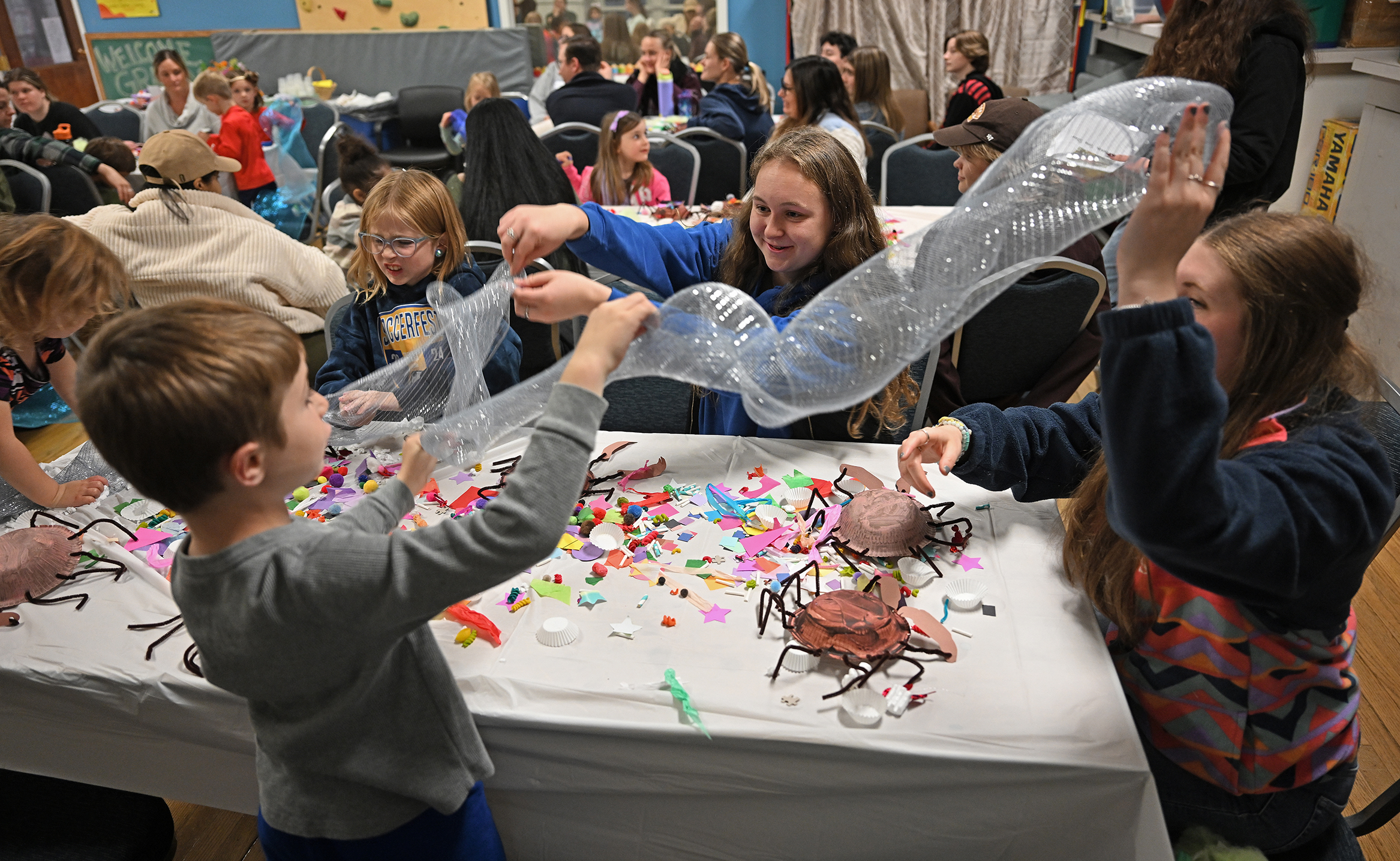 Members of Conn’s chapter of Oceana, an international organization dedicated to marine conservation, led an ocean-themed craft night with Child Development Lab School students and their families in Holmes Hall.