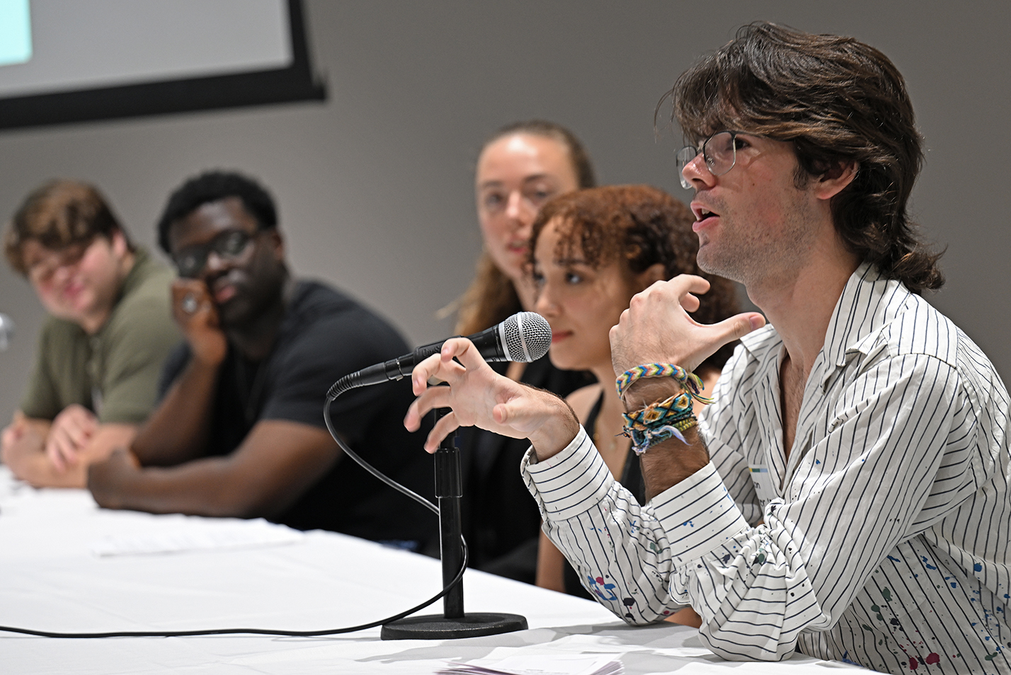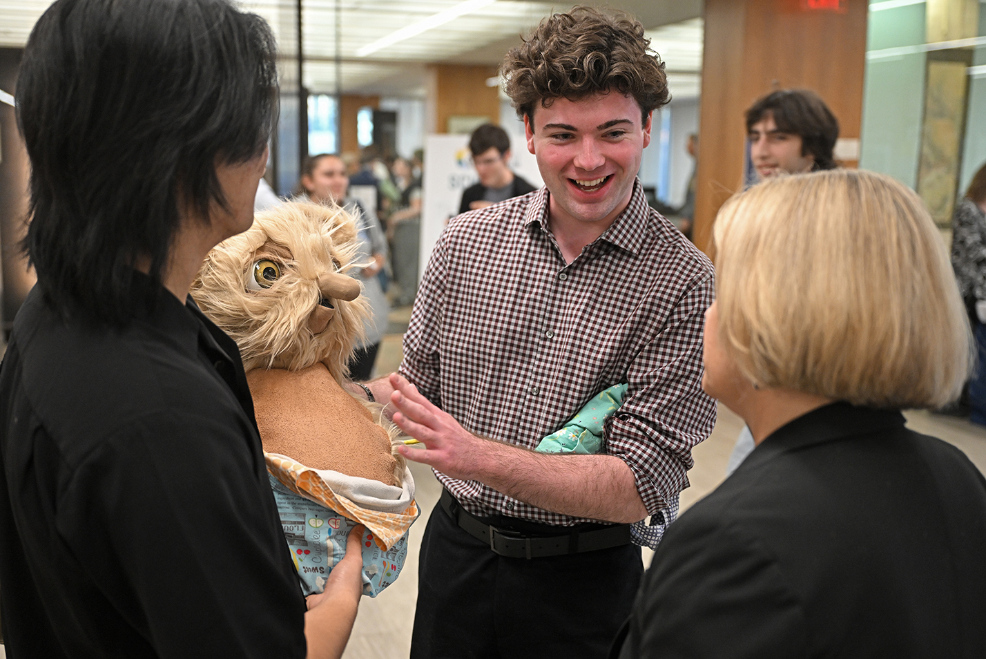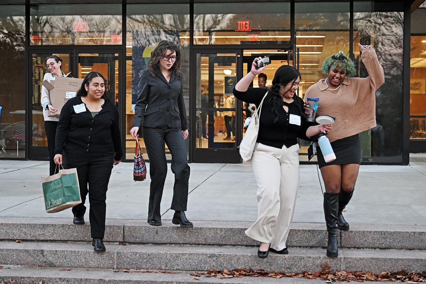 L-R: Aspen Thompson-Langner ’27, Allie Vidinha ’27, Ava Gebhart ‘27 and Theo Andres ’27 crowd into a photo booth at the Nov. 13 opening of “Behind the Curtain,” a student-curated exhibition on the art of photo booth photography. Students taking “Perspectives on Photography” with McDannel Professor of Art History and Anthropology Christopher Steiner and Associate Professor of Art History Karen Gonzalez Rice worked for over a month with 2024 Krane Art History Guest Residents Brian Wallis and Näkki Goranin to interpret and curate the exhibit, which is on display in Shain Library through Dec. 17. Read more.