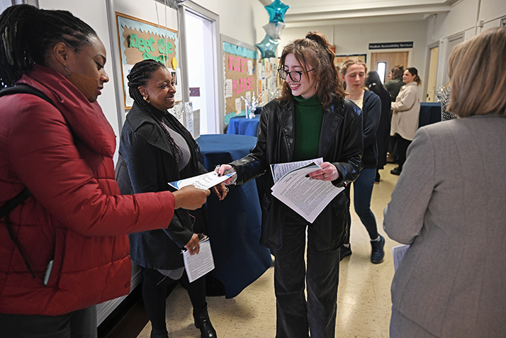 “We put up posters, we showed movies, we held discussions, and we had about 10 students who volunteered to spend the entire week navigating the campus entirely by wheelchair,” he told the large audience of students, faculty, staff, alumni, and former faculty and staff gathered for the event in the new, bright space in Smith House.