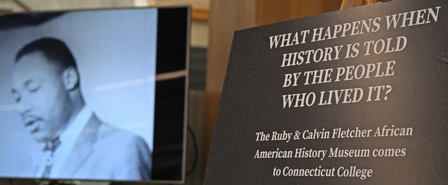 Connecticut College is hosting an installation from the Ruby & Calvin Fletcher African American History Museum, the state’s first and only museum of its kind, at the Charles E. Shain Library throughout the month of February. The installation is presented in partnership with Conn’s Black Student Union (BSU) and made possible by the Sharis ’86 & Thorn ’88 Pozen Endowed Fund for Excellence in Journalism, Writing, and Media.