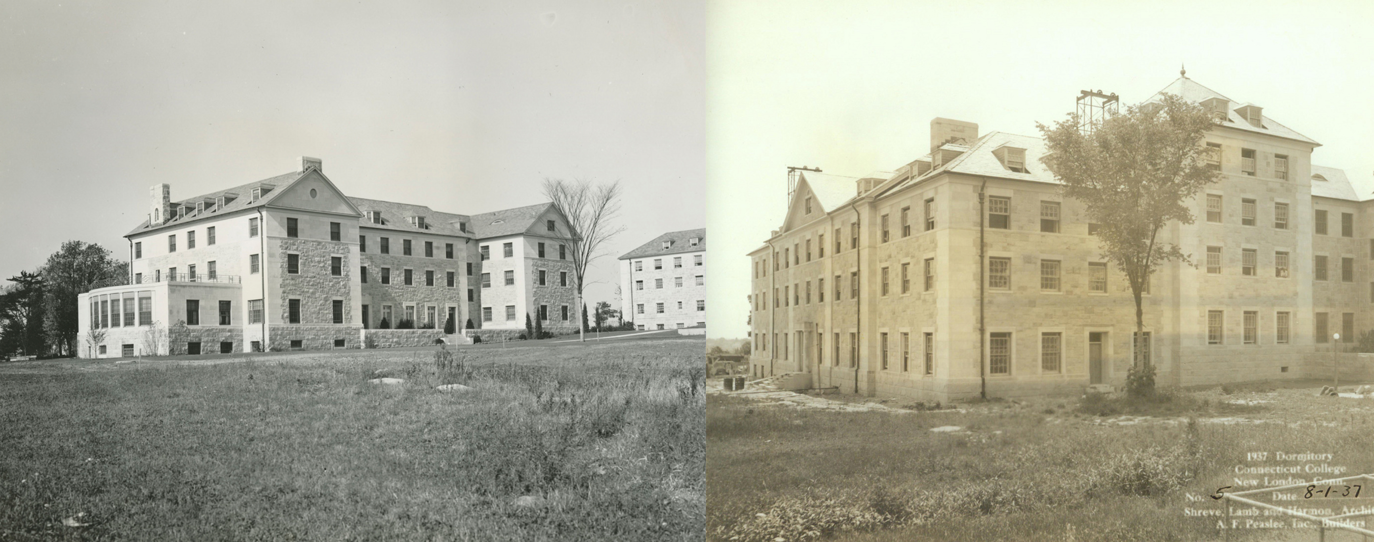 Just as Jane Addams has Freeman attached, Blunt was built ready for a partner building in the future. In the photo above, one wing has limestone while the other has a stone facade. With the expectation that another residence would be attached, limestone was used so as to not waste money on stone that would never be seen. Instead of a Freeman-style building, the low-slung Larrabee House was built and the limestone facade can still be seen today.
