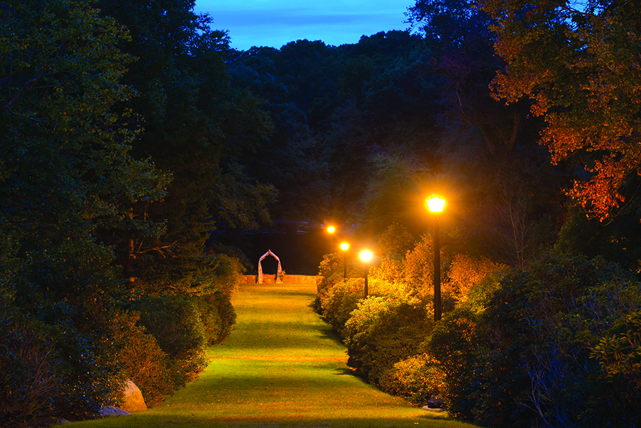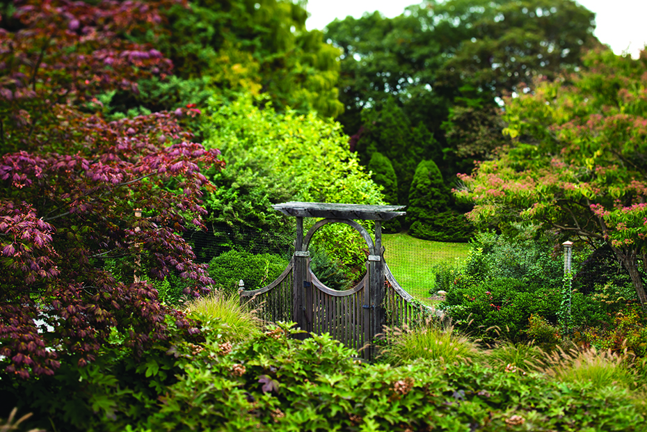 On the east side of Mohegan Avenue, beyond this hobbit's-door-like gate, lies the five-acre Caroline Black Garden, home to a mature collection of ornamental trees and shrubs from around the world. Established in the 1920s, the garden is named in memory of the first chair of the botany department. In 2001, the garden was dedicated as a member garden in the international organization Gardens for Peace.
