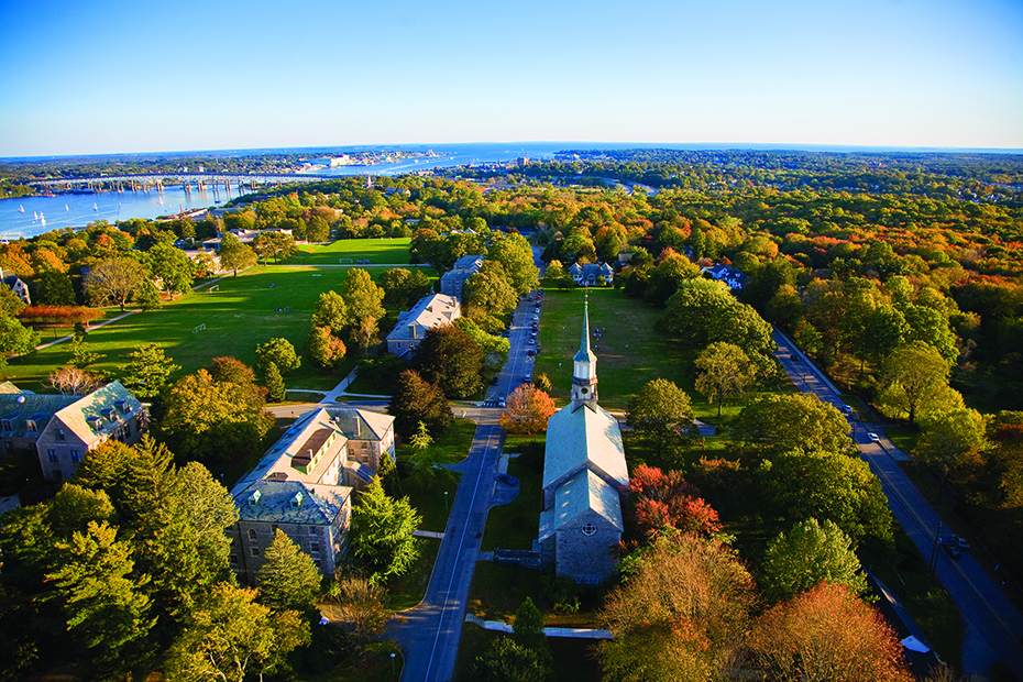 Connecticut College boasts of being one of the only New England liberal arts colleges with an ocean view, and it's evident looking south over Harkness Chapel and Harkness and Tempel greens toward Long Island Sound.