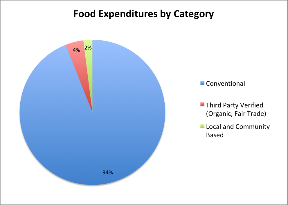 Increase the percentage of sustainable and fair labor practice goods purchased by the College