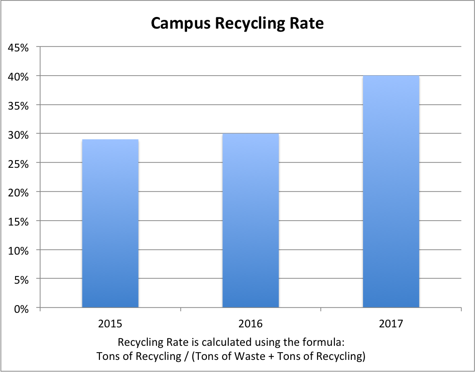 Operating a campus necessarily comes with an environmental impact from the everyday use of buildings and resources. The more than 2,600 daily users of our campus create 800 tons of waste each year and reducing this waste is a key goal. Achievement of waste reduction goals will be strongly tied to successfully educating community members to engage in habits that conserve resources. We will also continue to monitor the possibilities for large-scale projects as new technology, composting facilities and funding become available.